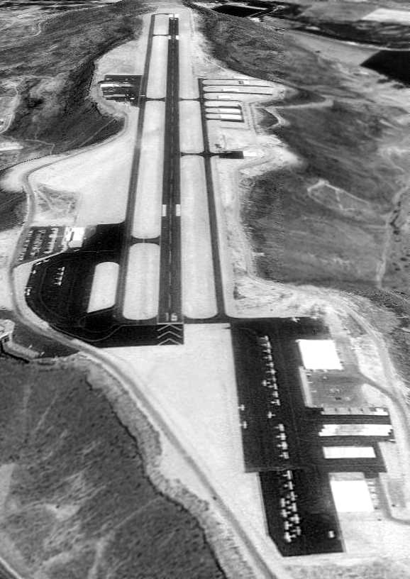 Municipal airport dedicated, runway blacktopped, and small terminal constructed